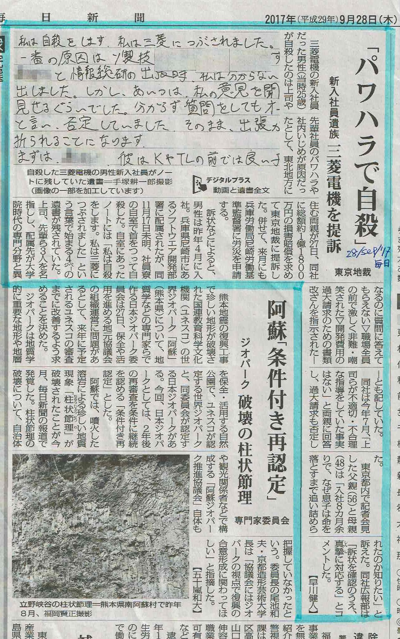 (毎日新聞 2017年9月28日)