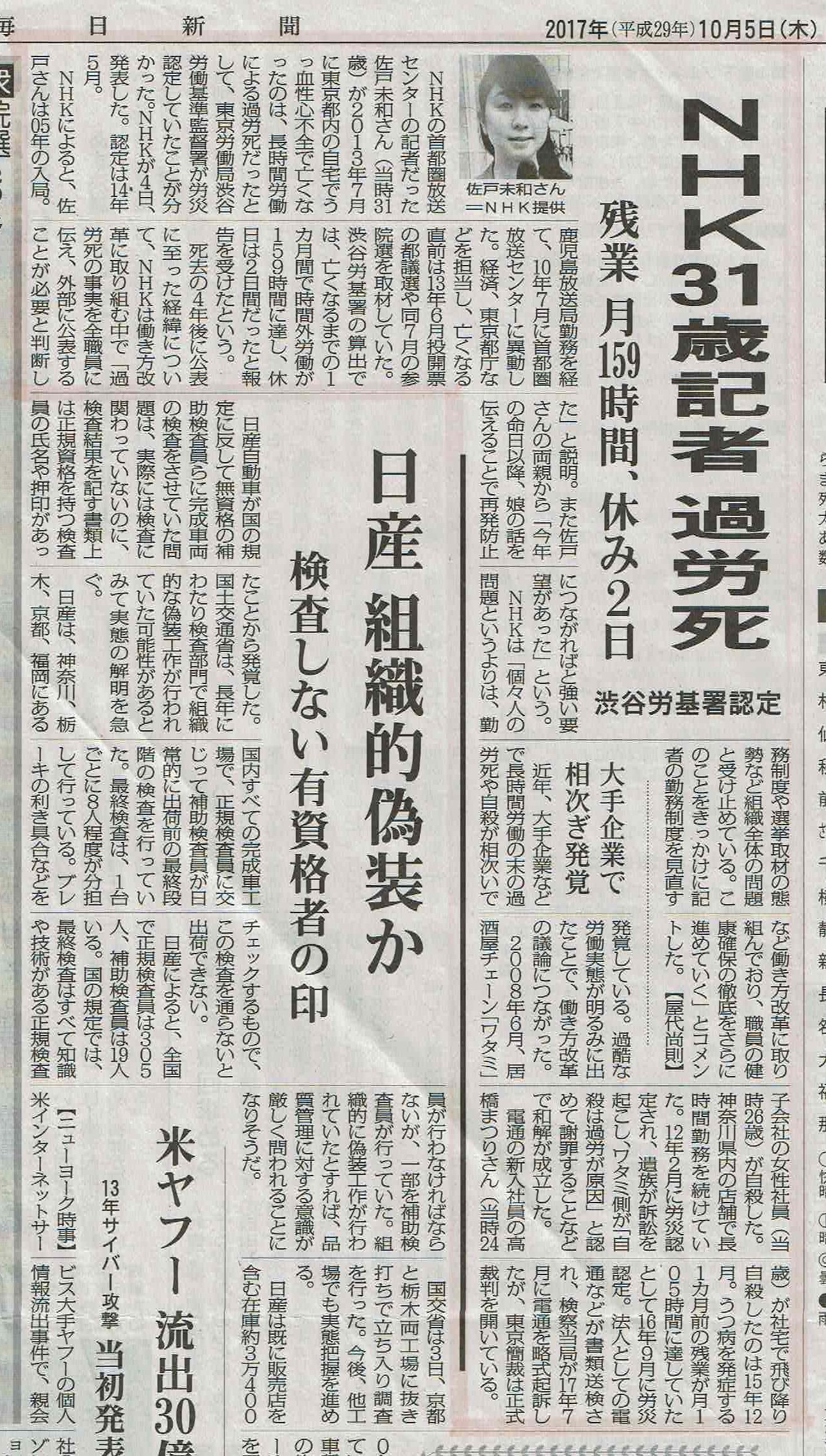 (毎日新聞 2017年10月05日)