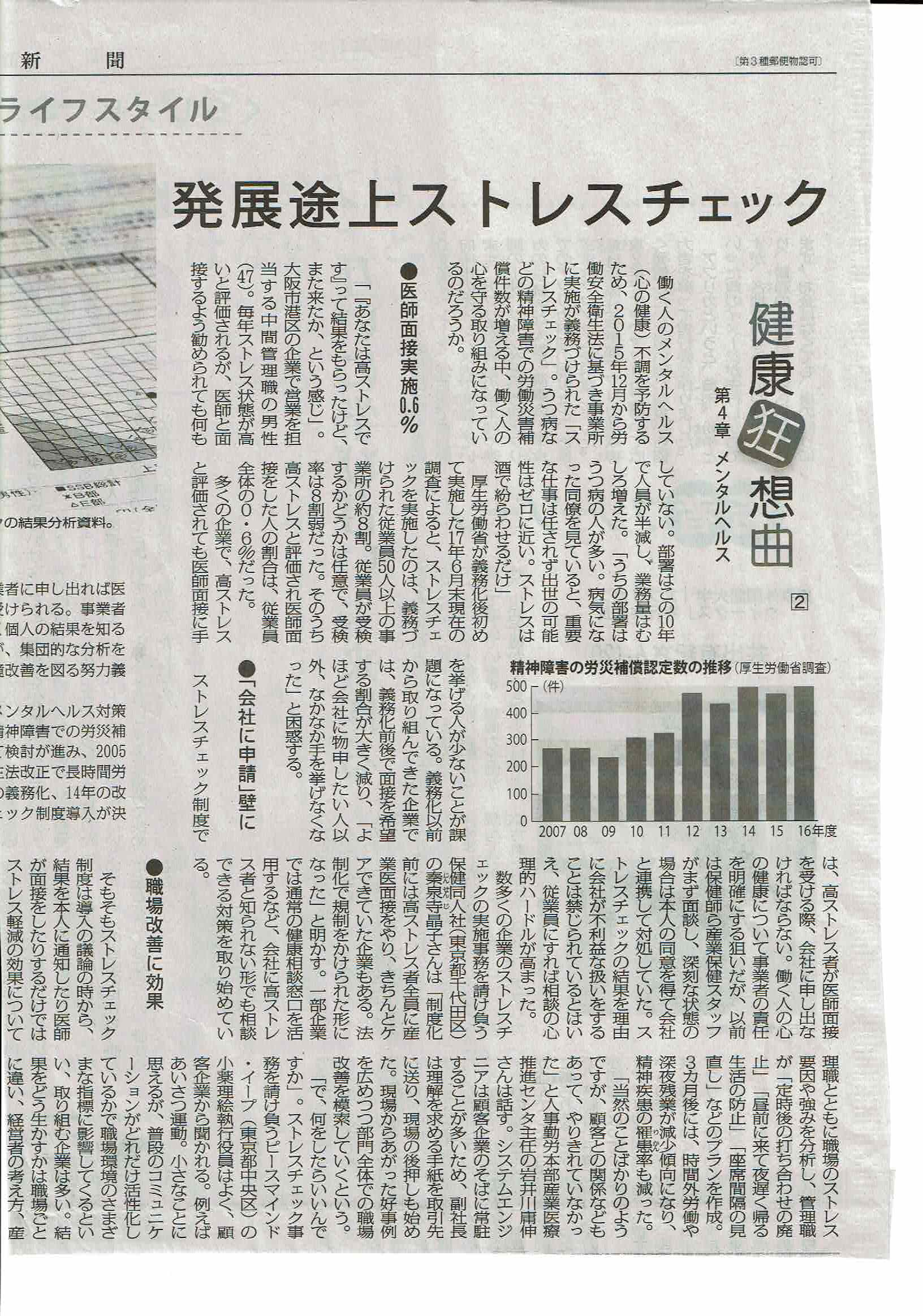 発展途上 ストレスチェック 毎日新聞 20171221